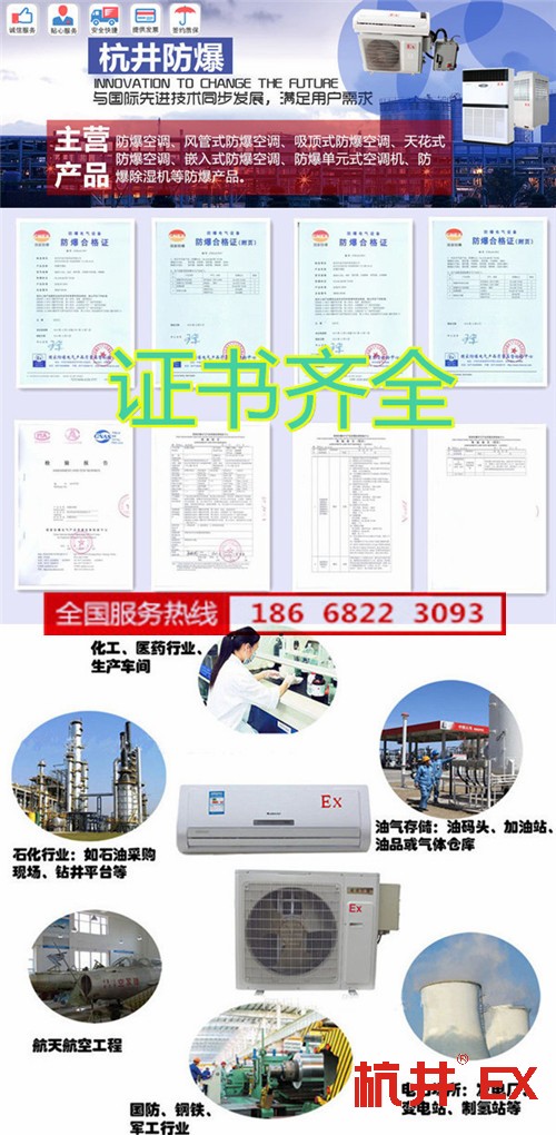 杭州井泉防爆可供应化学品仓库防爆空调机、格力防爆空调、美的防爆空调、大金防爆空调、海信防爆空调等防爆制冷设备!化学品仓库防爆空调机 一点五匹防爆空调机咨询:l86-6882-3O93